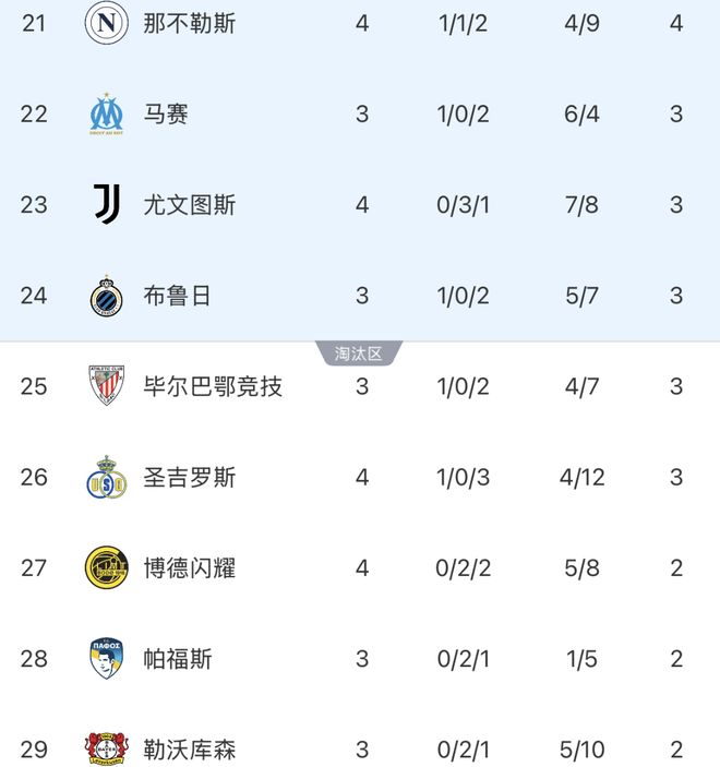 而在上轮欧冠比赛中,那不勒斯则以2-6的比分惨败给荷甲的埃因霍温队。埃因霍温在4轮欧冠中就赢了1场球,就是击败那不勒斯,而且是大比分胜利。那不勒斯另外2场欧冠的表现为:2-1险胜葡超的葡萄牙体育,0-2完败曼城。4轮4分的那不勒斯,在欧冠36支球队中暂列第21位,只领先淘汰区1分,本轮全部结束后,那不勒斯的排名应该还会下滑。